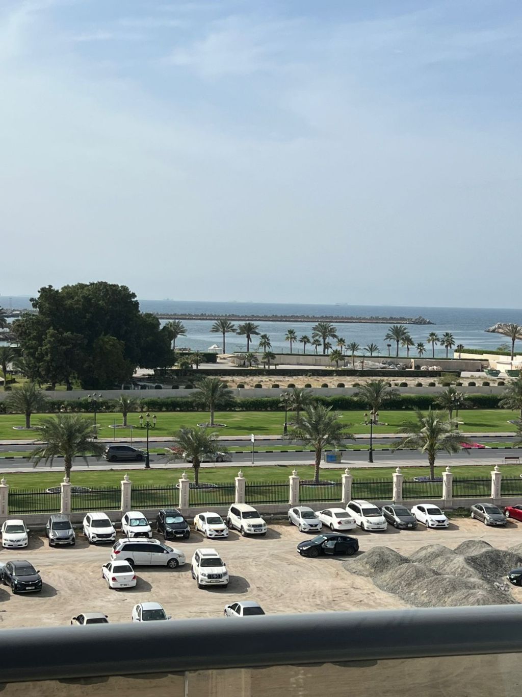 One - bedroom and living room apartment with a balcony and sea view. Beautiful family apartment, first tenant, in a prime location in Al Qulaya, Sharjah. Front and back units available. Prices AED38000/ 36000 Payment 4 installments