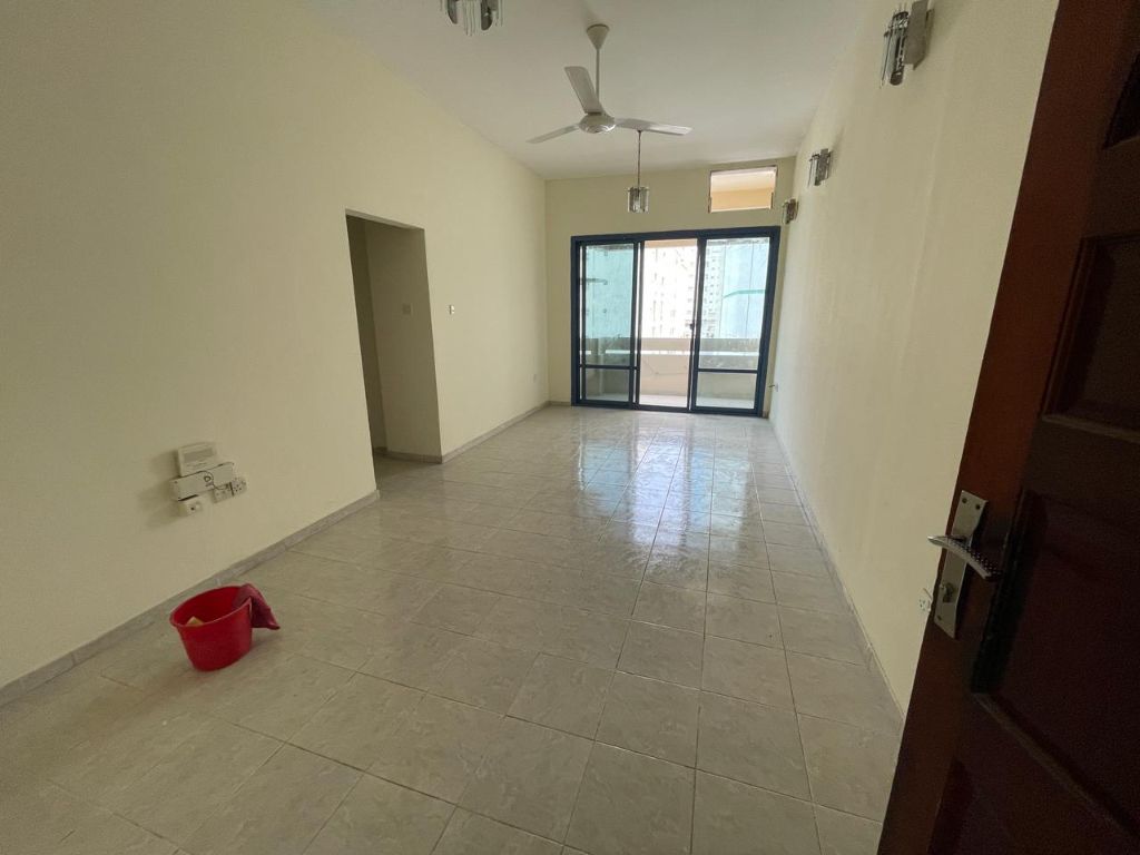 The most beautiful and largest 2 - bedroom apartment with a living room in Sharjah, featuring 2 balconies with an open view, a privacy layout, 2 bathrooms with super deluxe finishing, and a modern - designed kitchen, in a clean building close to all services and facilities, with easy access to the Dubai exit, priced at only 30000, with flexible payment options, and regular maintenance free of charge before