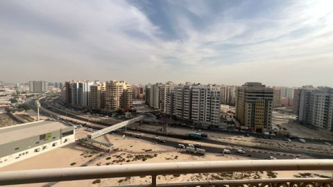 One bedroom and living room in Al Mamzar, Sharjah On the Dubai exit Overlooking the main road Annual rent AED35000 Payments 6/ 4