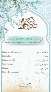 Welcome salon TURQUOISE in Charjah. All services disposables hair, Marocain bath, nail, gel extension, pédicure, manicur، hydra facial