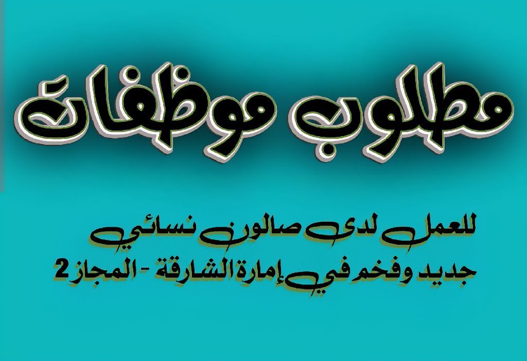 مطلوب (موظفات) للعمل لدى صالون نسائي جديد وفخم جدا في إمارة الشارقة - المجاز 2 / المطلوب موظفة تتقن الحمام المغربي والمساج وواكس للجسم والخيط (فتلة) موظفة تتقن المنيكير وبديكير وتركيب الاظافر والرموش / وموظفة تتقن كل ما يتعلق بالشعر / يجب التواجد داخل دولة الامارات وإقامة سارية المفعول وخبرة لا تقل عن سنتين / لمزيد من التفاصيل والمعلومات التواصل عبر الواتسأب