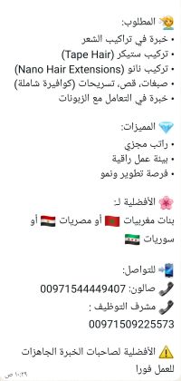 مطلوب بنات للعمل في صالون تجميل في الشارقة. مطلوب متخصصة في الشعر مطلوب باديكر ومنيكير في أسرع وقت