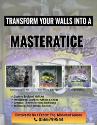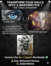 عايز ديكورات جريئة وفريدة من نوعها تحب تعمل تعديلات مبتكرة تعكس شخصيتك ومساحتك جداريات منحوته باختيارك جرافيتي احترافي لمحلك أو مكتبك أو شركتك لمسة فنية مميزة لبيتك أجواء ابداعية وممتعة لغرف نوم الاطفال خلي مكانك يحكي عنك تواصل مع العالمي رقم 1م. محمد جمعة ديكورات جداريات جرافيتي تصميم - داخلي ابداع فن ديكور - عصري غرف - اطفال تشطيبات Looking fo