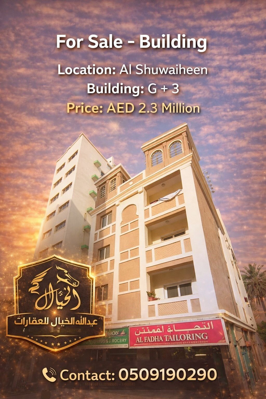 فرصة للبيع في الشويهين عمارة مكونة من أرضي + 3 بسعر 2.5 مليون عدد 6 شق غرفة وصالة مساحة كبيرة وعدد 3 محلات