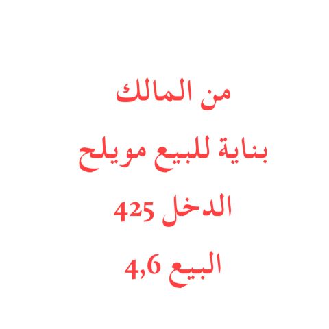 بناية للبيع من المالك مباشرة منطقة مويلح أرضي + 3. عدد الشقق 6 غرفة وصالة. 4 محلات. 6 استوديو. الدخل 425000 سعر البيع 4600000