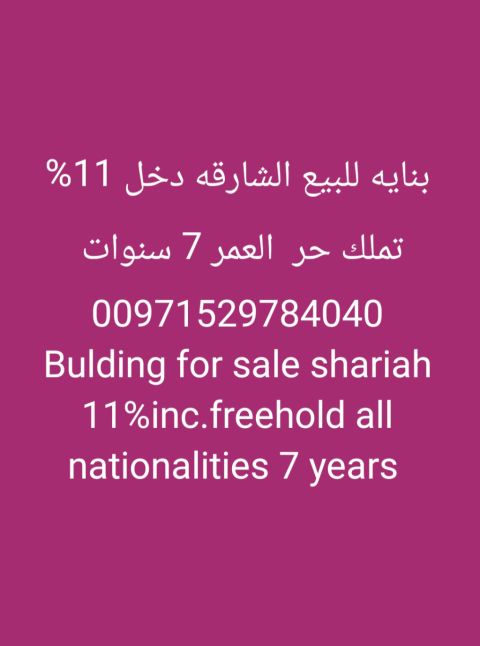 Building for sale in Al Majaz - Sharjah Ground floor, three parking floors, and eleven typical floors Plot area 8298 SqFt. Building Details 88 studio units 44 one - bedroom apartments Expected return on investment 9.5% For inquiries, please contact us We also have buildings available in Sharjah, Dubai, and Ajman ranging from AED1500000 to AED150000000. Our apologies to fellow real estate brokers