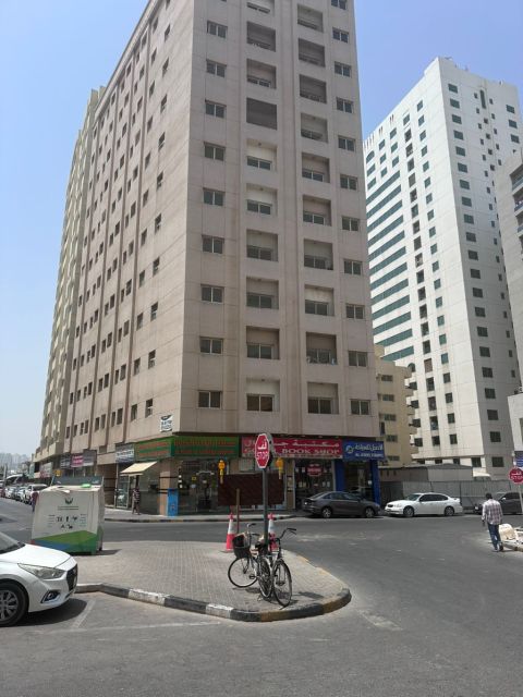 Commercial building for sale in Sharjah, Al Qulaya area. Ground floor + 4 floors. Area 3200 SqFt (corner street and alley) Age 5 years. Split AC units. Consists of 16 one - bedroom apartments + living room, 3 shops, and a guard's room. Income AED391000 (subject to increase) asking price AED4600000 (final, non - negotiable) Location near Sharjah Corniche and Al Urooba Street