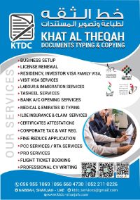 خدمات اعداد الأعمال، والطباعة الطبية وبطاقات الهوية الاماراتية، وتصديق الشهادات