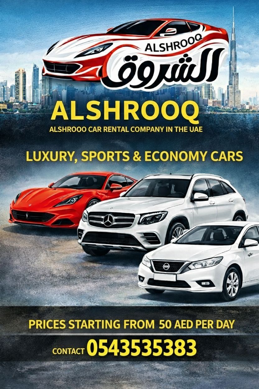 شركة الشروق لتأجير السيارات في الامارات سيارات رياضية فخمة واقتصادية بأسعار تبدأ من 50 درهم لليوم هنوصلك لغاية البيت للحجز والاستفسار