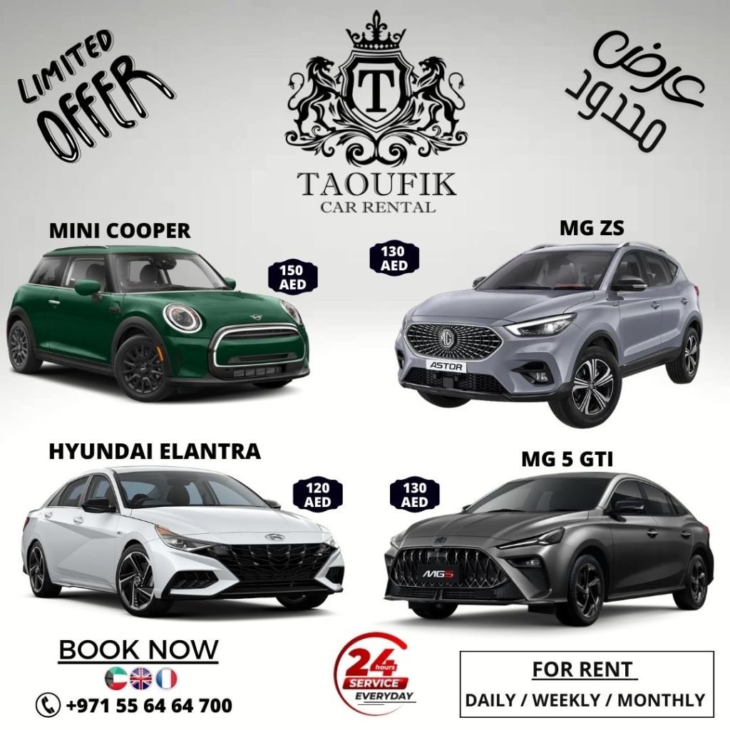 For daily, weekly, monthly and annual rent, modern cars of various economic, family, sports and luxury models for individuals and companies at competitive prices started from AED60 for monthly rent with free delivery and pick - up service to and from the airport or hotel