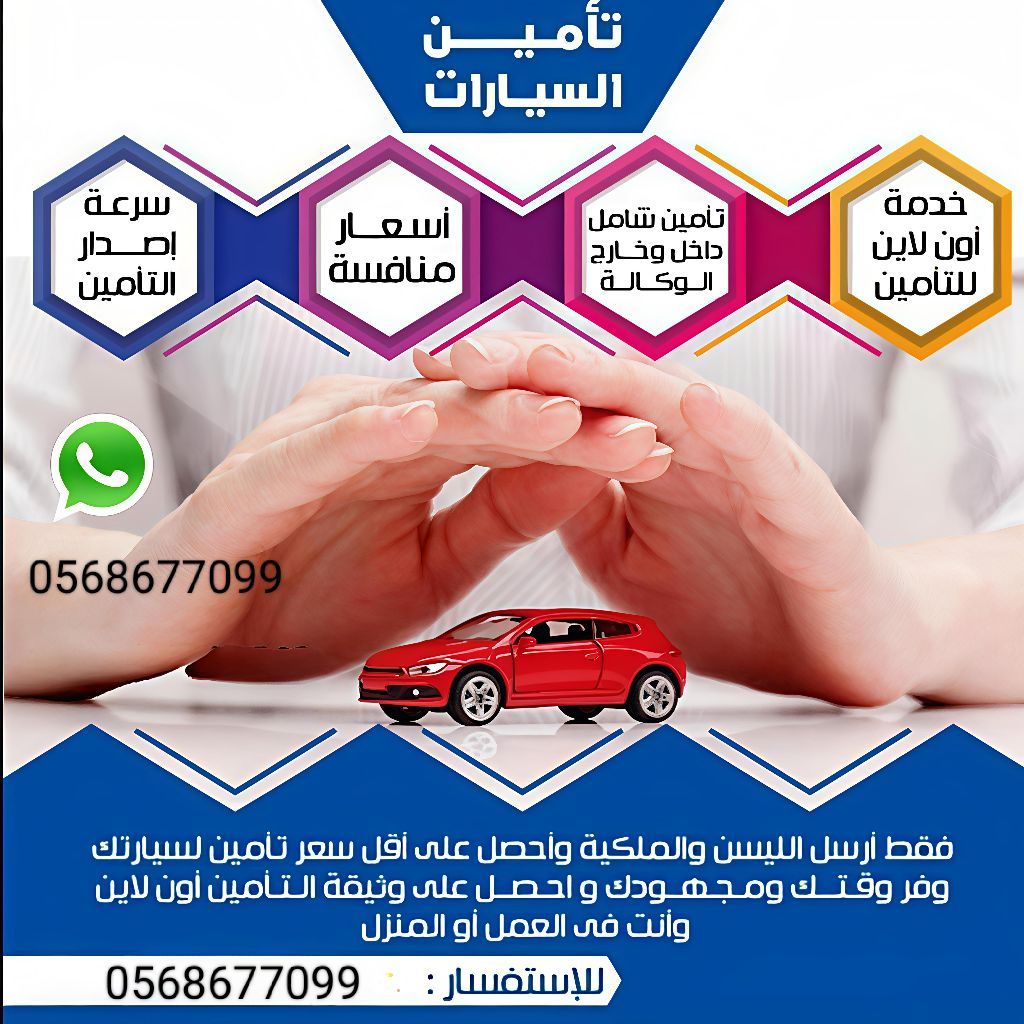 يوجد تأمين للسيارات بأفضل الأسعار تأمين شامل وضد الغير كما يوجد تأمين للعمر صغير وليسن جديد لجميع أنواع السيارات