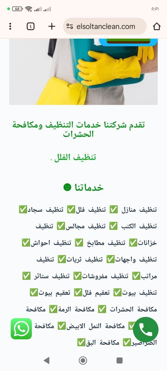 خدمة البيت الحسن كلين لتنظيف الشقق، المطابخ، الكنب والسجاد المراتب تنظيف وتعقيم الحمامات والأرضيات مكافحة الحشرات بشكل كامل مواد أمنه تنظيف الحوش بالمواد وضغط المياه تنظيف الضرايش ويوجد مكافحة سلك حمام تنظيف لكافة الحفلات