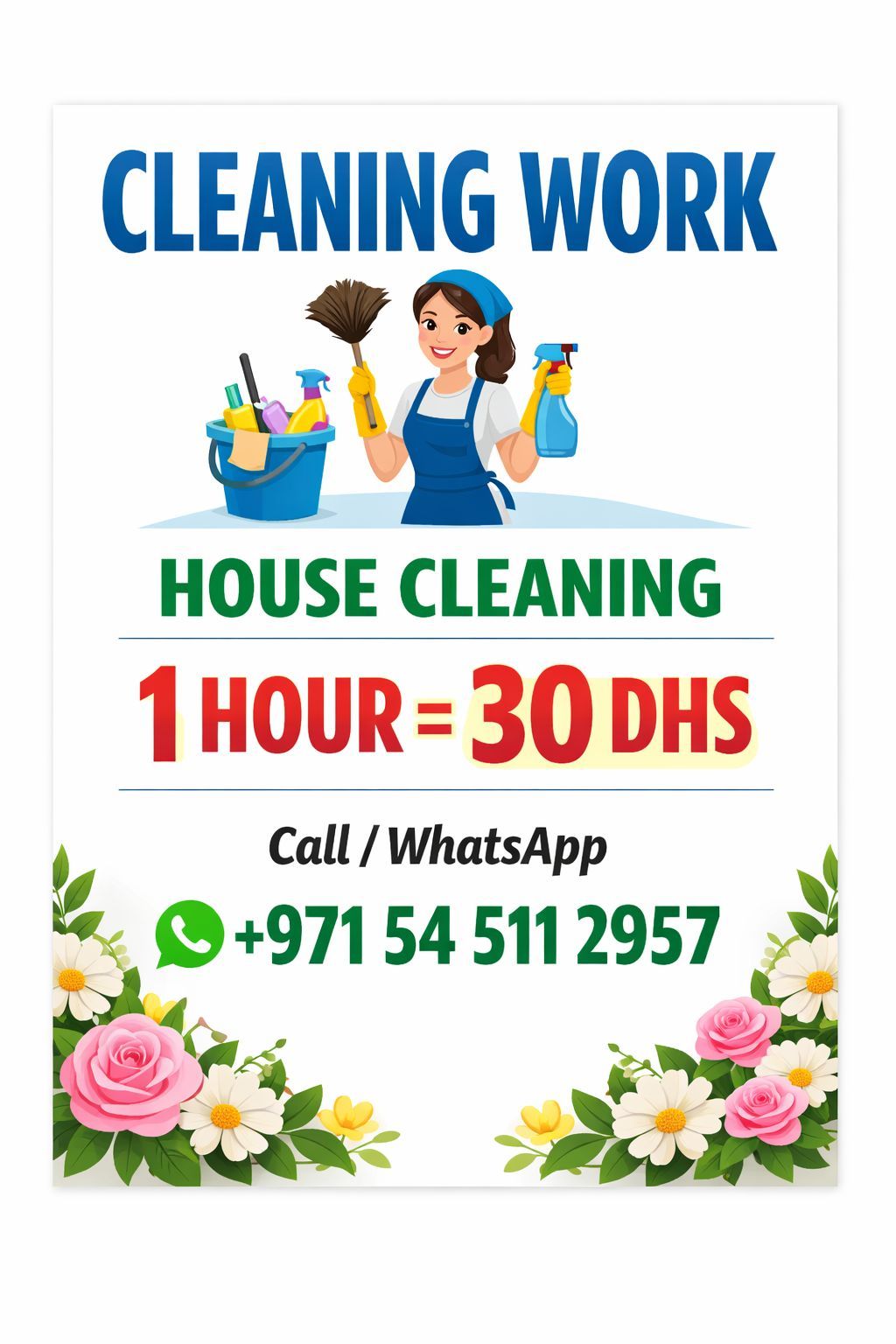 Cleaning house wash and cleaning room 30 drham per1 hour