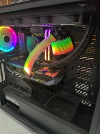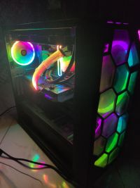 For sale Custom Gaming PC with a Unique Design Key Features Glass chassis with multi - color RGB lighting - Modern design with distinctive lighting effects - High performance for gaming and design - Suitable for general use and browsing