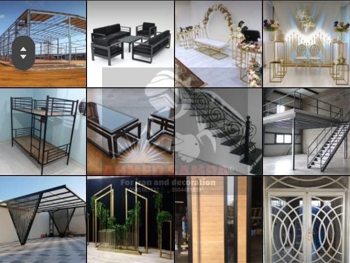 أحمد سمرا للأعمال المعدنية مجالس برجولات مواقف سيارات هاندريل سلالم بلكونات بوبأت شبرات جميع الأعمال المعدنية وصيانة أبواب الشبرات تركيب سندويش بانل جميع ما يخص الحديد والديكور