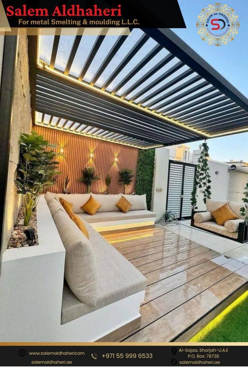 برجولات حديد وبرجولات كاست ألومينيوم للسيارات والاستراحات نوفر تصميم وتنفيذ جميع أنواع البرجولات بجودة عالية وتشطيب فاخر برجولات حديد قوية ومناسبة لمواقف السيارات برجولات كاست ألومينيوم ديكورية للفلل والحدائق (برجولا - بر جوله - بارجولا - بار جوله - مظلة - مظلات - مظلة سيارات) نحن مصنع سالم الظاهري للألومينيوم والحديد المشغول