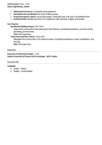 فورمان مدني خبرة 10 سنوات في السودان في مجال الإنشاءات لدي دبلوم هندسة الاشراف الكامل علي كل الأنشطة في الموقع وادارة العمال والمواد ومتابعه الجدول الزمني للعمل وقراءة المخططات ومتابعه تنفيذها حسب المخطط وحساب كميات المواد وقياس وحصر كل البنود المنفذه في الموقع وعمل تقارير يوميه بي الأعمال المنفذة في الموقع وكافة اجراءات السلامة بي الموقع