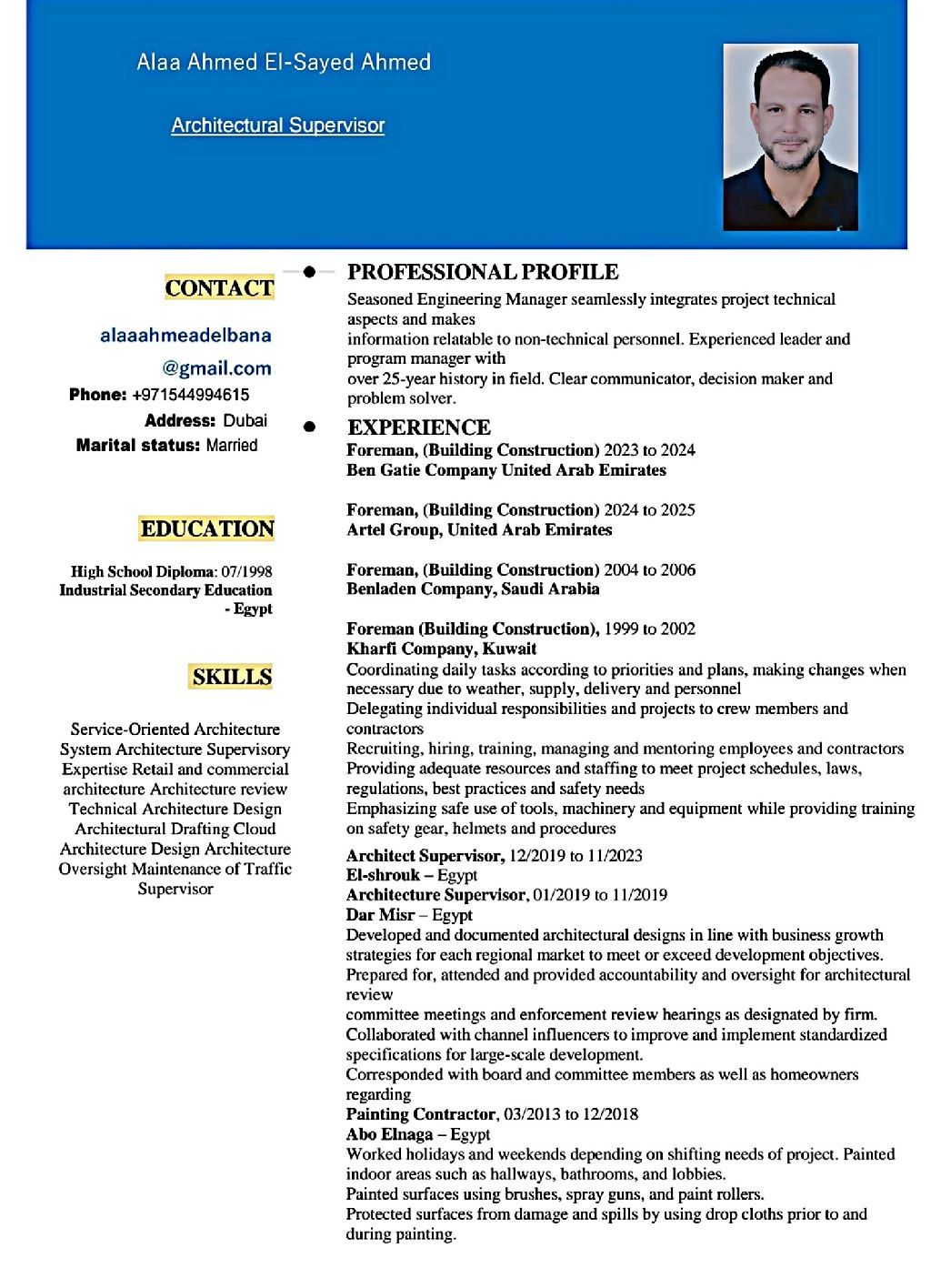 علاء أحمد السيد أحمد فورمان تشطيبات خبرة جيده إن شاء الله