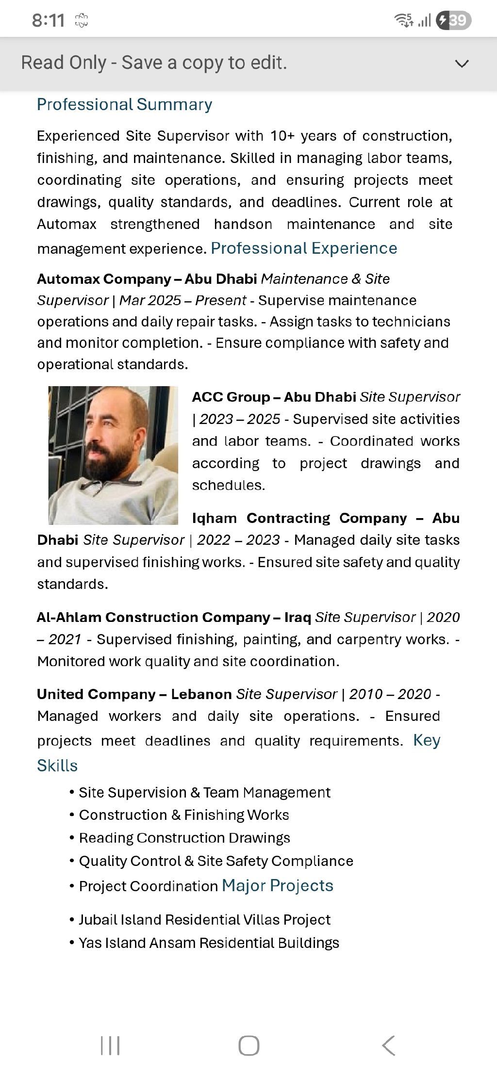 يطلب عمل مقاولات في الإمارات