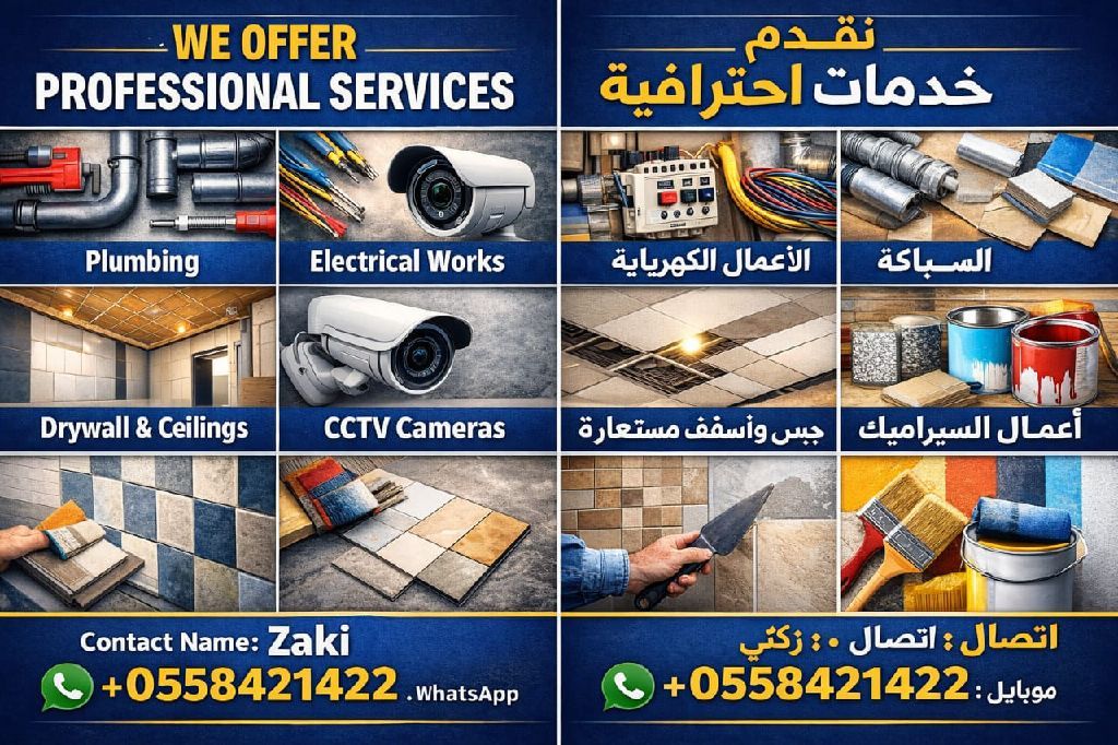 نحن نقوم بجميع أعمال الديكور كهرباء وسباكة وتجهيز المطاعم