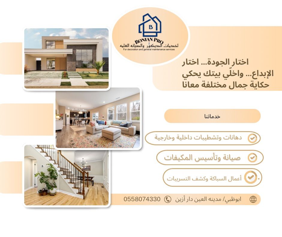 BONIAN PRO خدمات الديكور والصيانة العامة صبغ / جبسون بورد / سيراميك / فور سيلنج / شيب وراد / بديل خشاب / بديل رخام / وكمان نظام شامله لي بيتك رقم