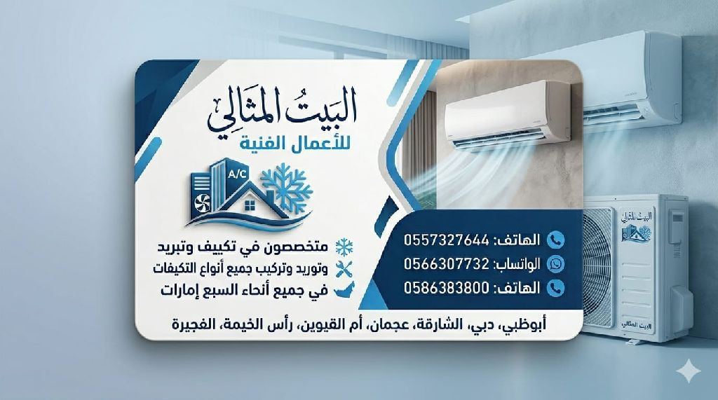 متخصصون في أعمال التكيف توريد وتركيب (تركيب جميع اجهزة التكيف سبليت. دكت سبليت. تأسيس كوبر بايب. تأسيس داكت pi. صيانة لجميع اجهزة التكيف)
