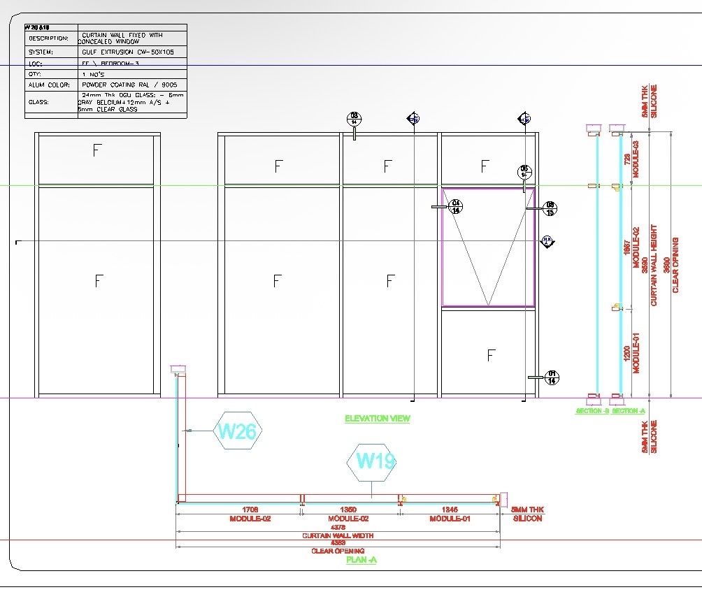 Aluminum & Glass Shop Drawing Services - Freelance Professional shop drawings for aluminum & glass works villas, sliding doors, windows, curtain wall, canopies, and modern doors (ACP) Pergolas Glass Partition Glass staircase. Aluminum steel. Includes shop drawings, sections, cutting lists, assembly lists, and material orders. Fast delivery & high accuracy