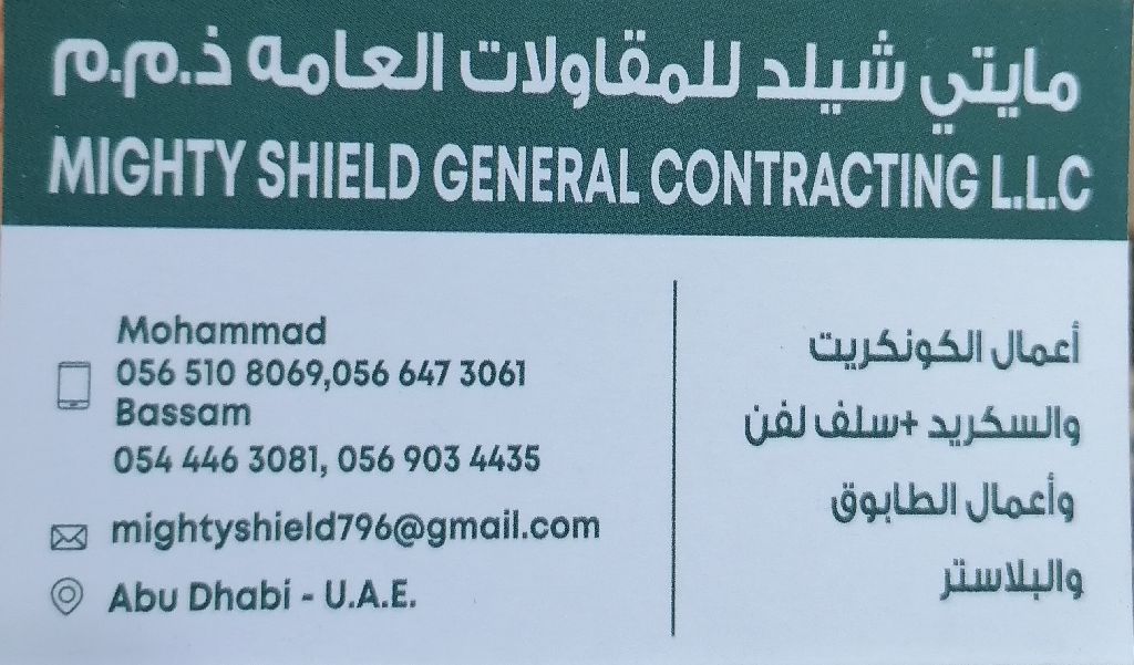 Mighty Shield General Contracting. We undertake concrete work, final finishing and leveling to required standards, screed and self - leveling work, plastering and brickwork