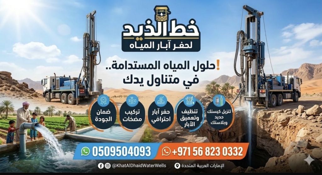مياه مستدامة حفر آبار مياه ارتوازية وتنظيف وتنزيل كيسنك وحفر جديد