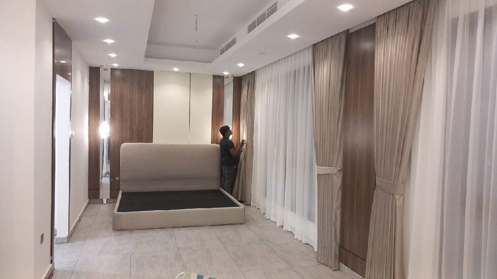 تيم كامل لتنفيذ كافة أعمال الديكور الداخلي من نجارين وتنجيد سراير وصوفا وصباغين جدران واستورجيه وجبسون بورد الفضل لله نجتهد لارضاء العميل موجودين في عجمان