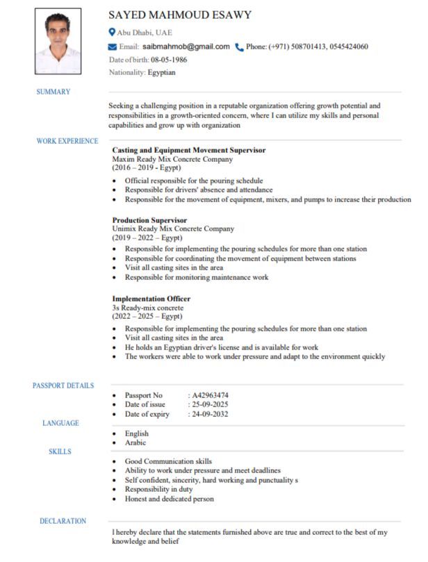 مسؤول تنفيذي ومشرف انتاج خبرة طويله