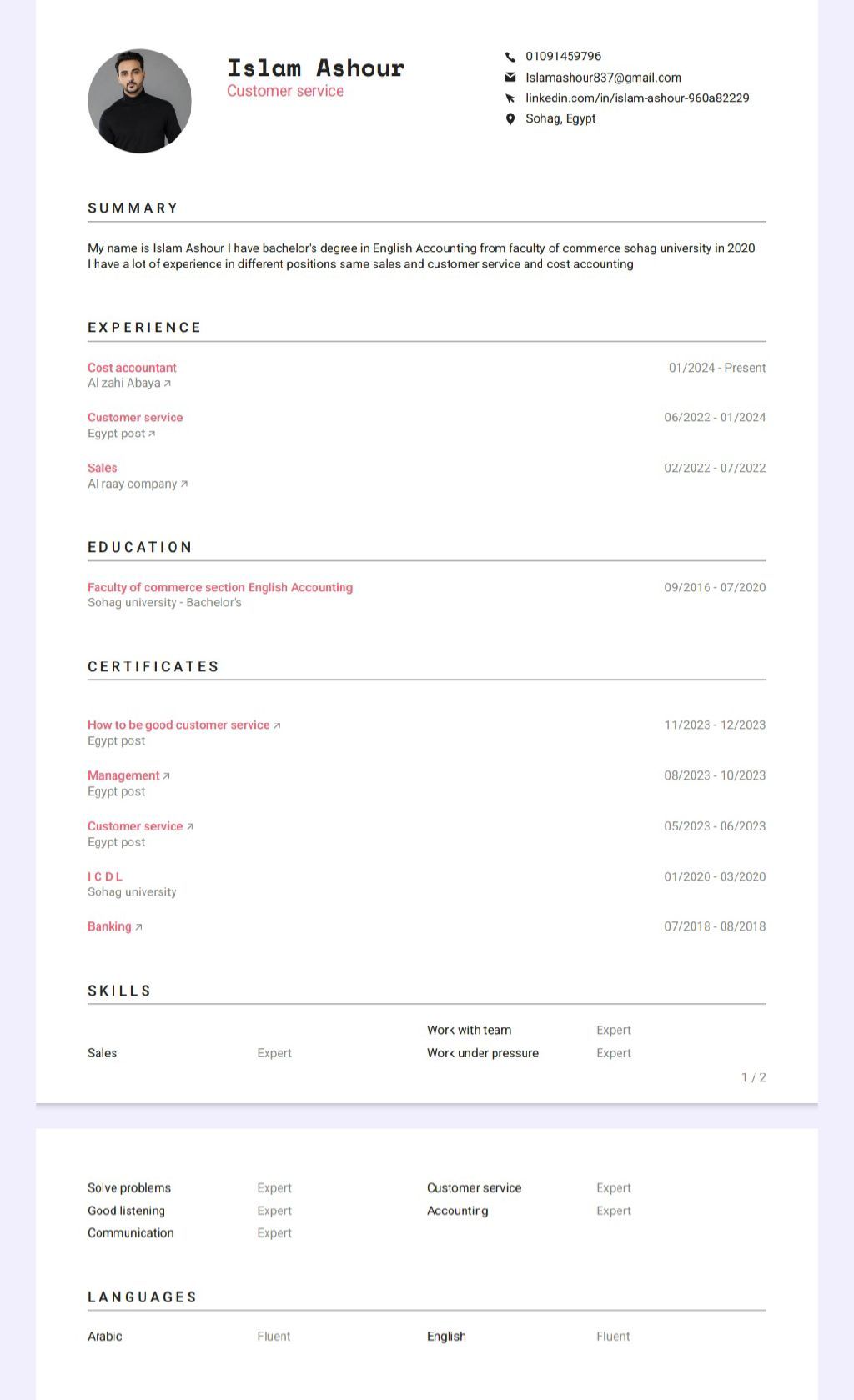 ابحث عن فرصة عمل في مجال الحسابات بدون خبرة أو خدمة عملاء بخبرة وعندي لغة انجليزيه ممتازة حاصل على بكالوريوس تجارة شعبة محاسبه انجليزي