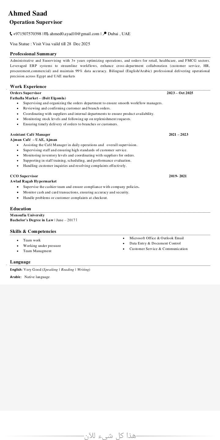 ابحث عن عمل داخل الهايبر ماركت بمعظم أقسامه خبرة 6 سنين داخل مجال الرتيل كمبيوتر ممتاز وخبرة بمجال الأداره والعمل في مجال المطاعم والكافيهات وخبرة بمجال السستيم ساوند تقفيل وتشغيل وصيانة السماعات. مصري الجنسية زيارة 29 سنة