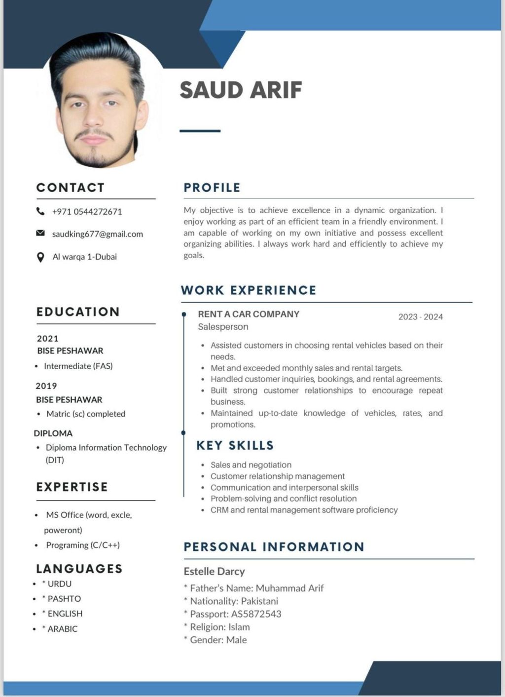 Hi everyone I want job I have my own visa and driving license computer skills. I speak English Urdu and. Arabic