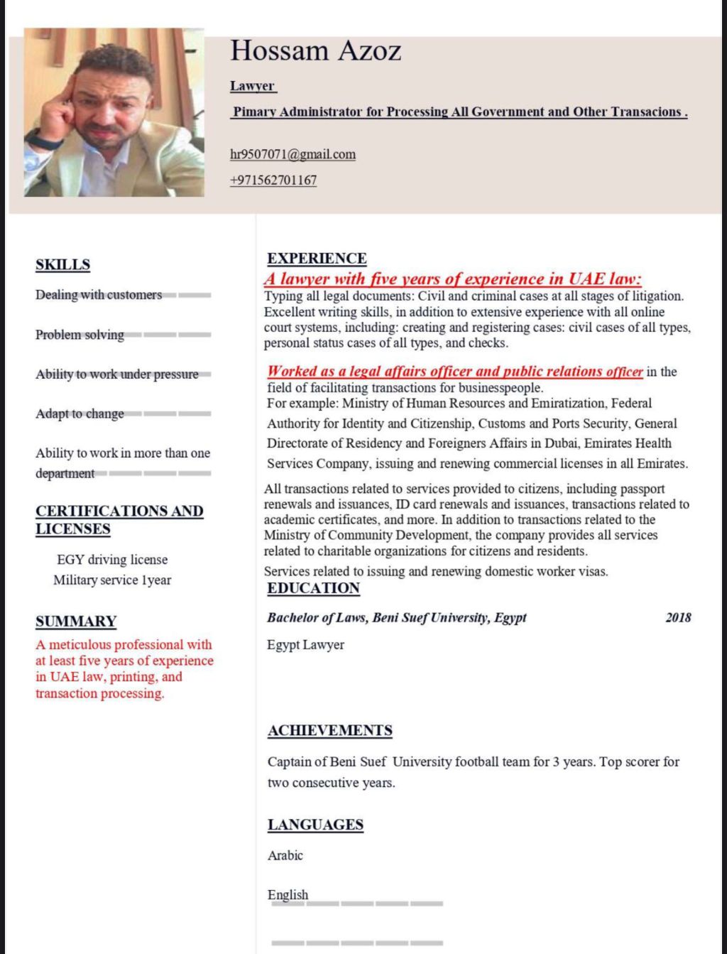 خدمات الطباعة وتخليص المعاملات بكافة الخدمات من جوازات - اقامات هوايات كشف طبي - خدمات العمل والعمال وخدمات تتعلق بالمحاماة حيث انني محامي ولدي خبرة بمجال طباعة المذكرات القانونية وتسجيل القضايا ومتابعتها وفتح البلاغات الجنائية وغيرها والعرائض بالنيابات ومراكز الشرطة