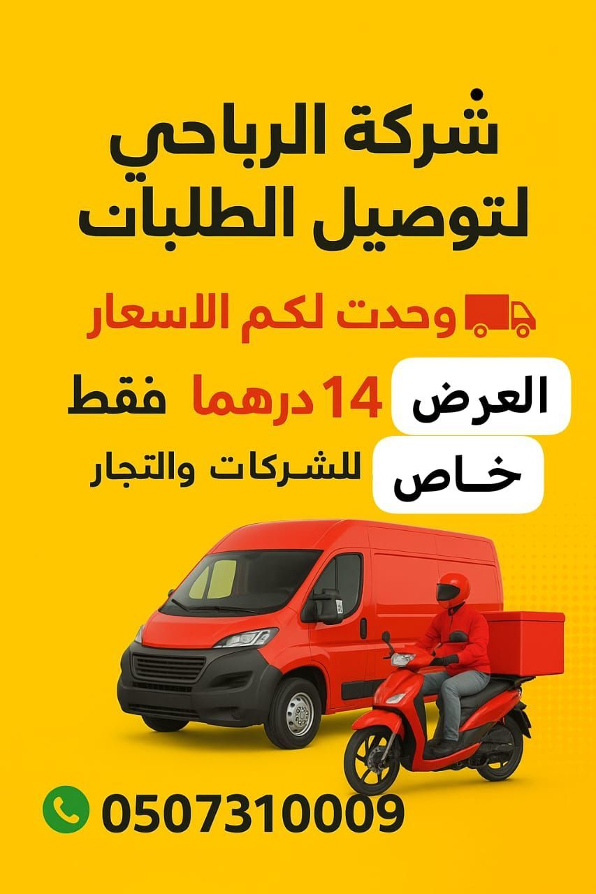يسر شركة الراب حي لتوصيل الطلبات أن تقدم لكم عرض التوصيل لكل الامارات فقط ب 14 درهم هذا السعر فقط للتجار والشركات من الشارقة المجاز لكل الامارات