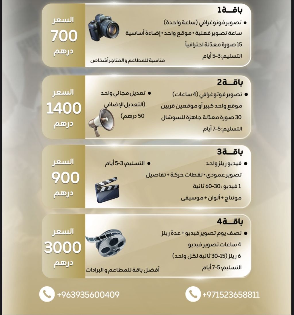 نقوم بعمل جميع التصوير والاعلانات والتصميمات وادارة صفحات السوشيال ميديا فقط اتصلوا معنا