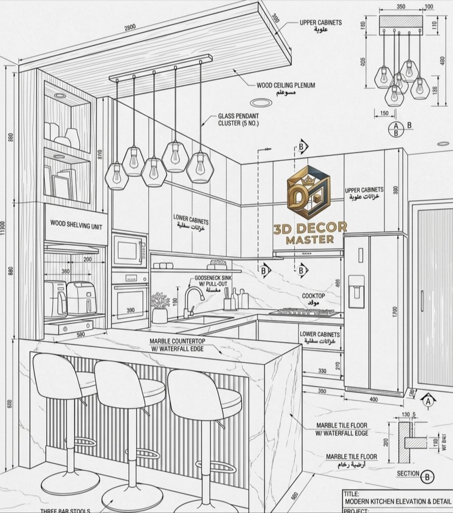 متاح تصميم 2D & 3D احترافي بأعلى جودة تصميم داخلي وخارجي مطابخ - محلات - كافيهات - غرف نوم رندرات واقعية قبل التنفيذ تسليم سريع سعر ممتاز