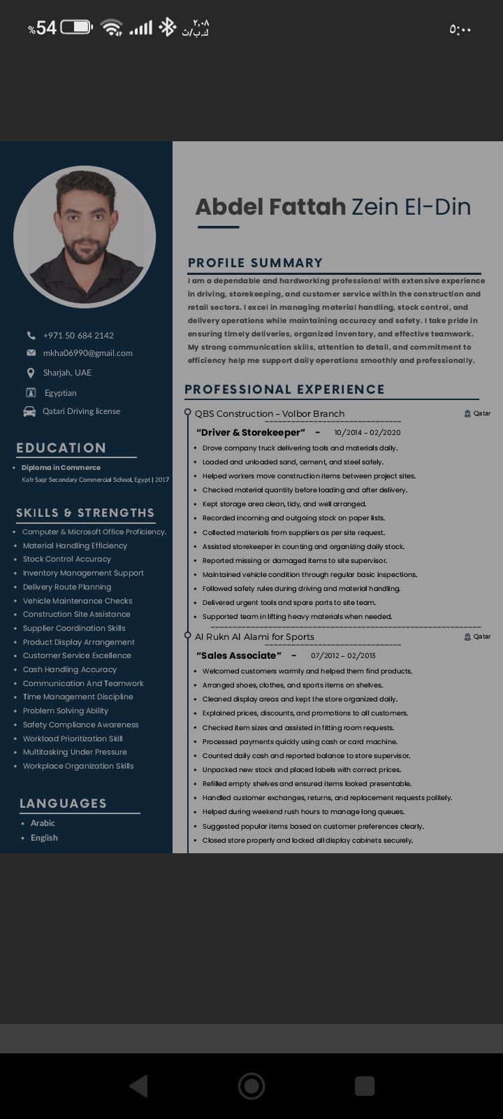 أنا عبد الفتاح أريد الحصول على فرصة عمل في مجال السواقة أو محلات الملابس لديه رخصة قيادة قطريه ولا يوجد لديه عقد عمل ابحث عن وظيفة