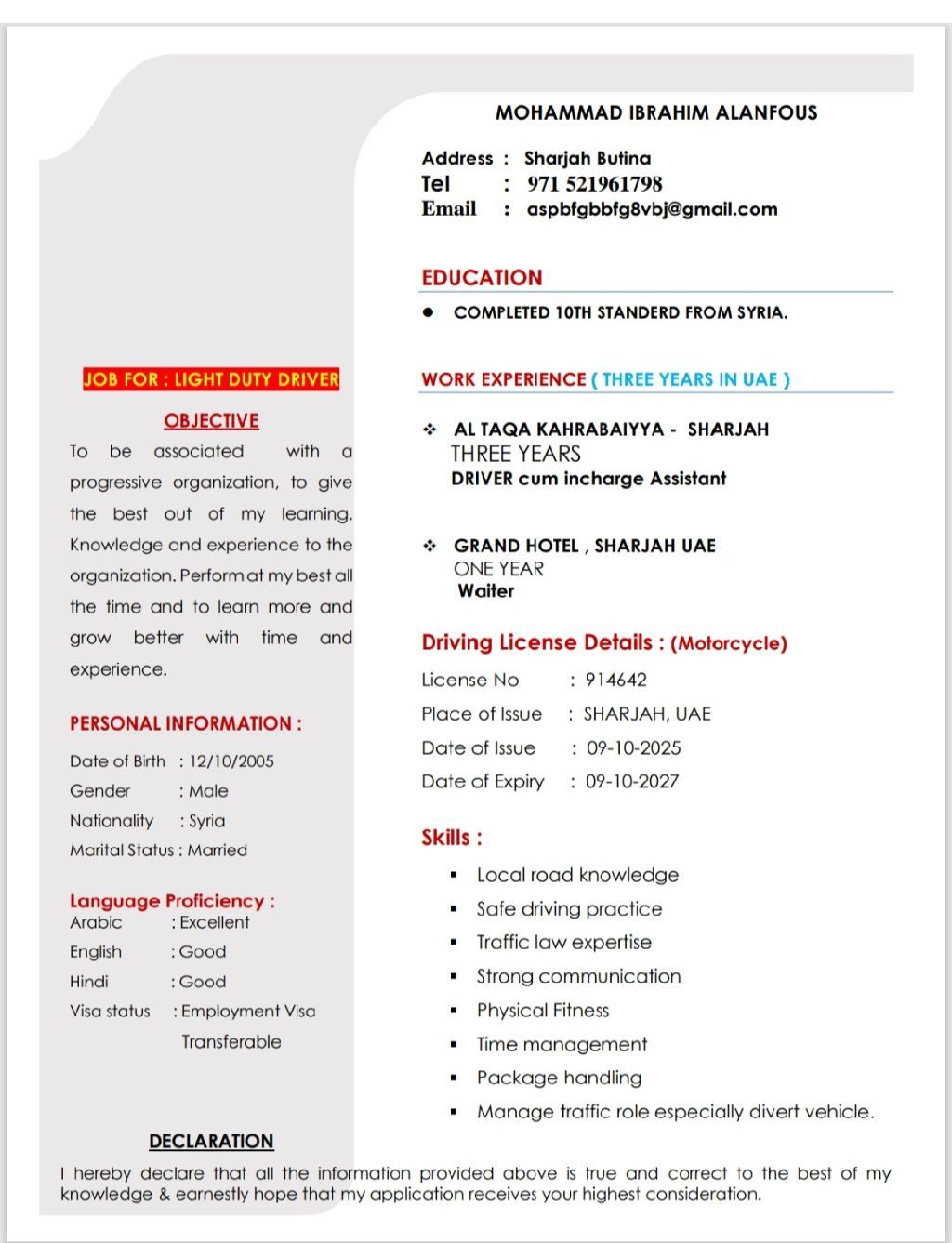 يطلب عمل سائق في الإمارات