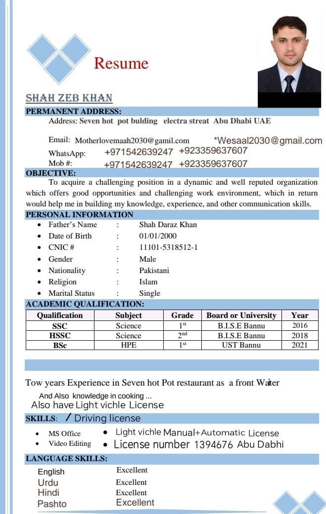 I am looking driving job because I have 3 nbr license. manual. and I have own transport visa. and also looking restaurant work I also have 18 months restaurant experience in seven hotpot restaurant as waiter and back waiter and currently I am here in Sharjah in if someone interested than contact with me on my nbr. is my contact and also WhatsApp. tnxxx for hearing me please real people contact