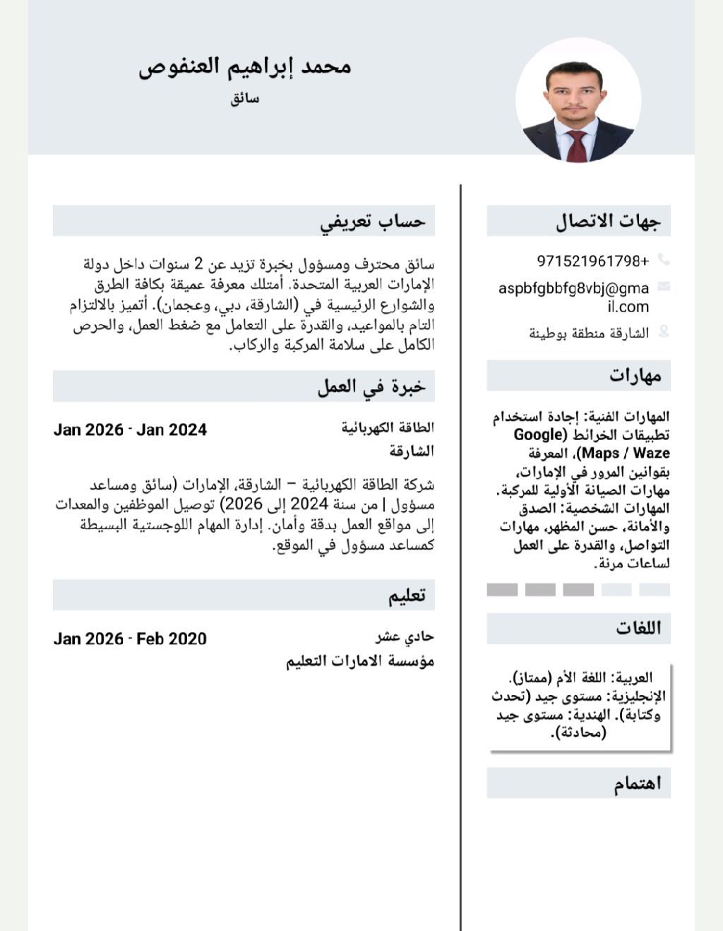 يطلب عمل سائق في الإمارات