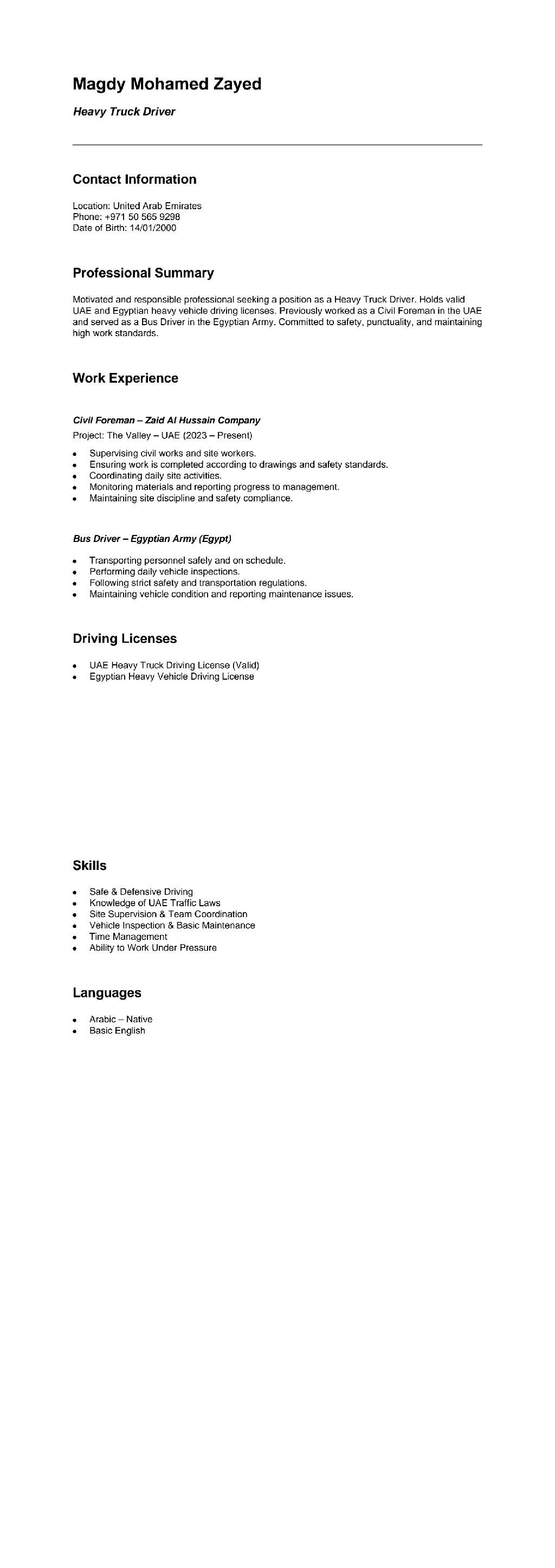 سائق حافلة ثقيلة رخصة سارية مقيم في الامارات سنتين ونصف