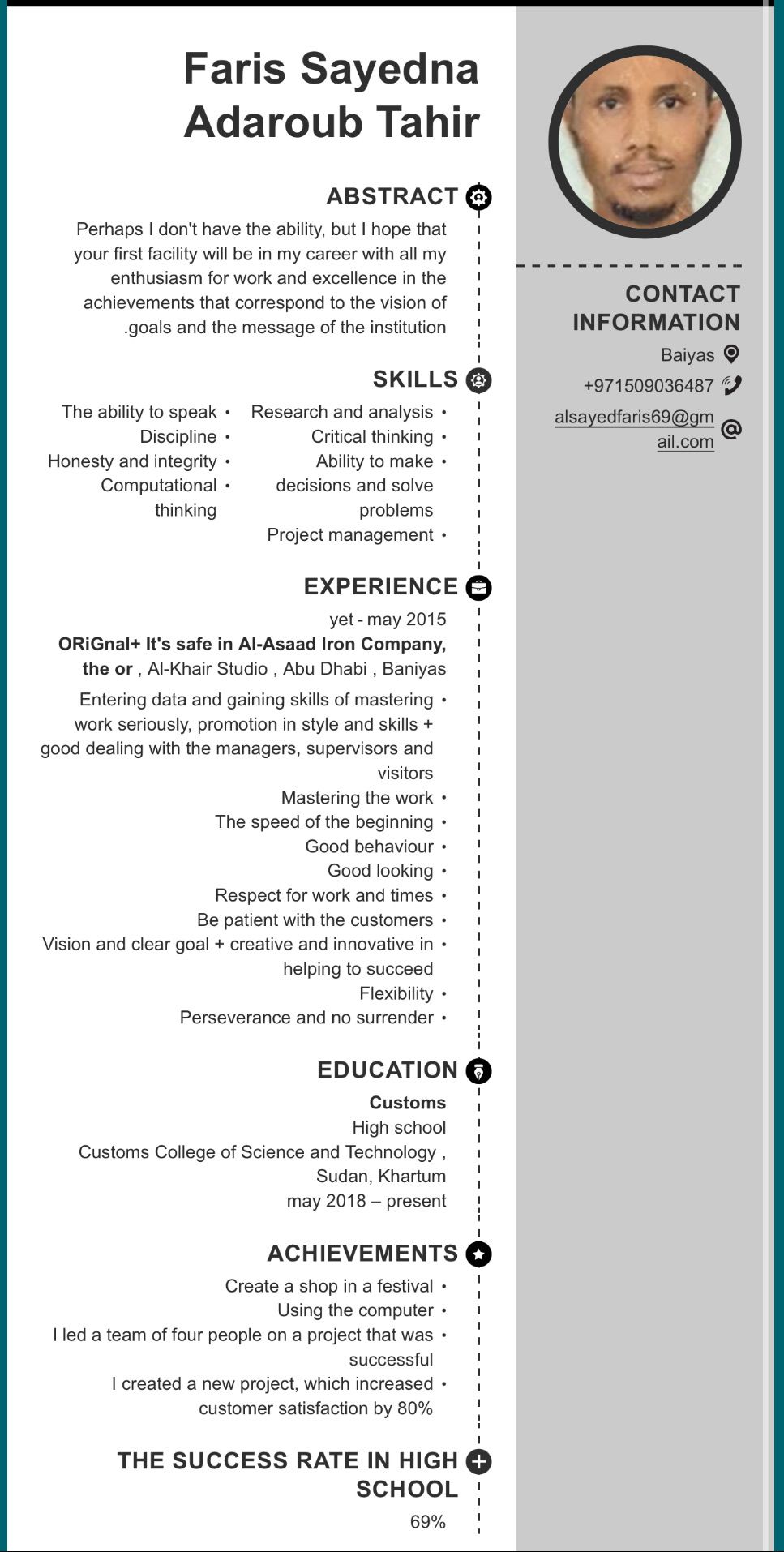 الاسم فارس السكن أبوظبي 25 سنة امتلك رخصة قيادة اماراتية + شهادة تخرج ابحث عن راتب 2400م فوق تاريخ انتهاء إقامة الدولة 8 / 12/ 2025