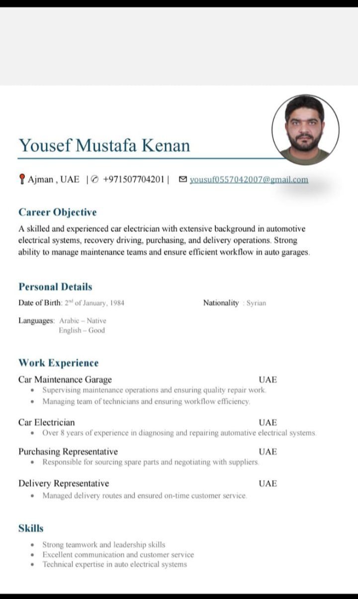 سائق خبرة طويلة في البلد من عام 2006 وكهربائي سيارات ومدير ورشة وعملت في مجال مندوب مشتريات يوجد سيارة حديثة 7 راكب موديل 2024 أربعة سلندر ابحث عن عمل مناسب
