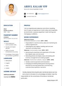Name Abdul Kalam VPP, Nationality India Job Driver experience 22 years Worked Dubai, CV included in photo