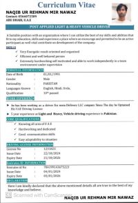 اسم خيال محمد باكستان ابحث عن عمل لدي رحصه قيادة حفيفة أو ثقيلة خبرة. باص الحفلة 15 سنوات مقيم داخل الامارات أبوظبي مصفح أعرف كل مكان أبوظبي العين دبي أعرف طريقة خرائط جوجل الحمد لله أعرف كل مكان أبوظبي العين دبي يتكلم عربي أردو انجليزي أي حد أريد دريوال تصل عليه مشكورين