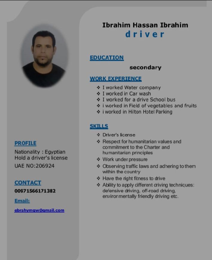 سائق مصري معي رخصة قيادة مانيوال سارية خبرة في الامارات 3 سنين ابحث عن وظيفة وجاهز فورا للعمل