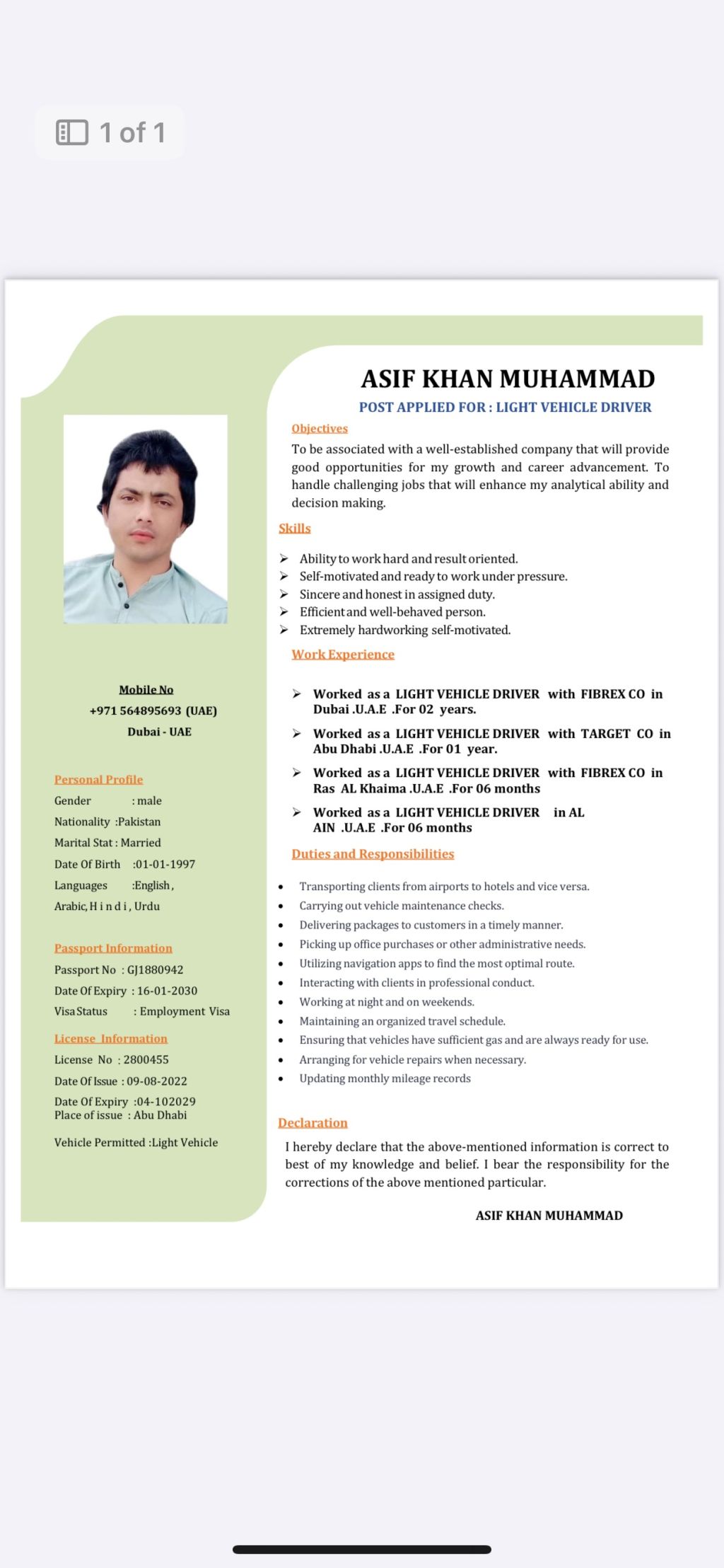 My Asif khan Driver vehicle my license five year