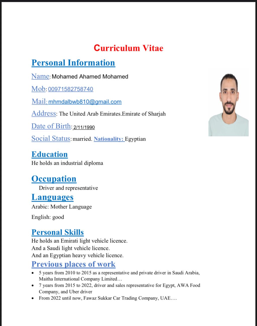 I am looking for a driver job. I have experience in car showrooms and worked in the field of catering and currently I work in a limousine company for luxury cars